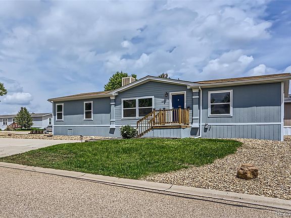 Beautifully remodeled home in sought after Eagle Crest Community. Light, bright and offers new paint, countertops, flooring, bathrooms, and fixtures. Know your home is safe and efficient with brand new, double paned windows. This large and affordable 3 bedroom 2 bath home has vaulted ceilings, large open concept living room, spacious kitchen with island, and dining area! Large walk in closets in every room and large 1 CAR GARAGE (could easily fit an extra car or space for workshop) plus an outdoor shed. All new paint on interior and exterior. All appliances are included, 3 reserved parking spaces and a deck to enjoy the outdoors. Eagle Crest is a tranquil community conveniently located off the I-25 corridor (just 35 minutes from Denver!) and offers easy access to nature trails, a clubhouse and pool, and a large children’s playground. Buyer must be approved by park before buying.