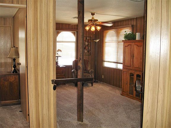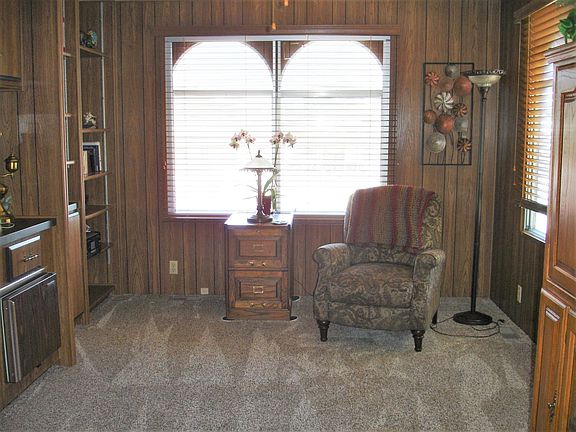 ''THE REDWOODS - a very popular Senior Mobile Home Park''. Are you ready for a Summer BBQ? This home is located on a larger lot with a park like setting that backs up to a green built. Lots of side & rear privacy. Move in ready. Bring your fussy buyers. Spacious 1584 sq ft double wide. Split floor plan with family room. New water heater & AC fan. Space rent includes water, sewer, & trash.FINANCEABLE