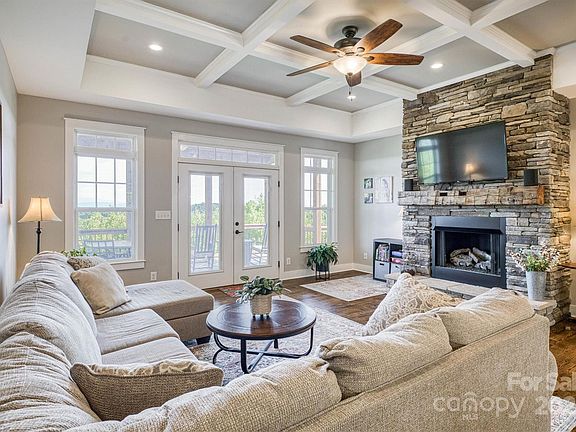 The views from this home are nothing short of breathtaking, with every sunrise and sunset offering a new masterpiece to enjoy. Nestled on 10 private acres, it provides the peace and seclusion you desire while still being just minutes from town. Inside, the open floor plan seamlessly connects the dining area, kitchen, and living room, where elegant tray ceilings and a cozy stone fireplace set the tone. The kitchen is as functional as it is beautiful, featuring granite countertops, a generous island, and a walk-in pantry. The master suite is a true retreat, complete with a spa-like bath showcasing a luxurious tiled shower, soaking tub, and walk-in closet. Two additional bedrooms, a full bath, and a convenient laundry room with a dog washing station complete the main floor. Upstairs, a versatile bonus room offers space for an office, playroom, or flex space. Expansive deck across the back of the home provides the perfect spot to relax and fully appreciate the stunning, ever-changing views this property has to offer. Car enthusiasts and hobbyists alike will appreciate the attached two-car garage with golf cart bay, as well as an additional detached two-car garage. Offering privacy and space, this property is ready to be your perfect retreat to call home.
