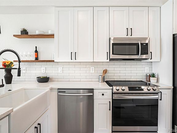 Modern design merges with effortless urban living in this contemporary townhome perfectly positioned in Sunnyside. Built in 2019, this turnkey residence blends style and function with soaring ceilings, abundant natural light and thoughtful upgrades throughout. The open-concept main level features a spacious living area and a modern kitchen with a farmhouse-style sink, newer stainless steel appliances and sleek finishes — ideal for both entertaining and enjoying quiet nights in. Upstairs, the primary bedroom offers ample space for a king bed and includes a Juliette balcony that fills the room with sunlight and fresh air. A versatile den or flex space provides the perfect work-from-home setup or workout area. Additional highlights include skylights, a high-efficiency washer and dryer set, dimmable lighting and one reserved parking space. Enjoy easy access to I-70, coffee shops and restaurants. With no HOA, a party wall agreement covers all snow removal, lawn care and outdoor maintenance.