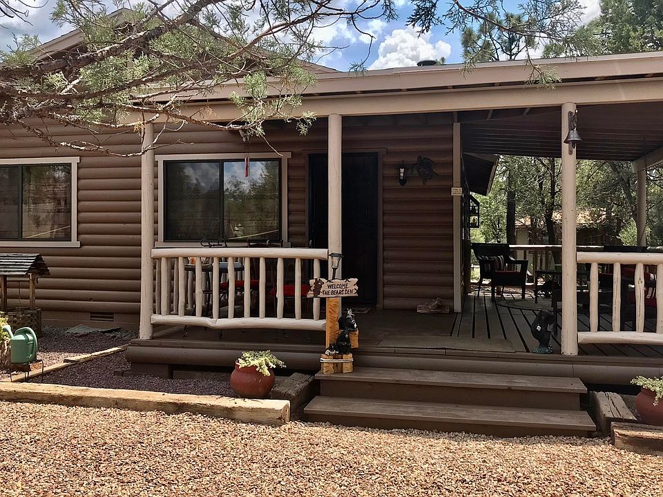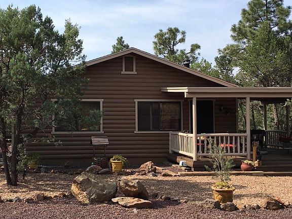 Charming cabin nestled in the trees on 1.58 acres making it private while still close to shopping, hospital and restaurants. Be at Show Low Lake out back gate in minutes. The wood stove warms the entire house. Open floor plan with large covered deck to enjoy all seasons. Great for entertaining, has an outdoor kitchen, big fire pit for enjoying the cool evenings by the fire. Fully functional chicken coop, fully fenced in yard. There is a barn, storage unit, and outdoor office. Brand new alternative septic system on the second lot ready to build a second home. Interior paint done in 2019 and exterior, paint including deck and railings done in 2018. Sits on two lots. Owner is a licensed Real Estate Agent in the State of AZ