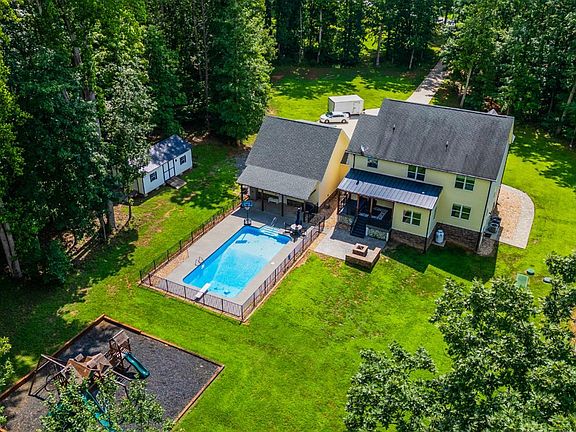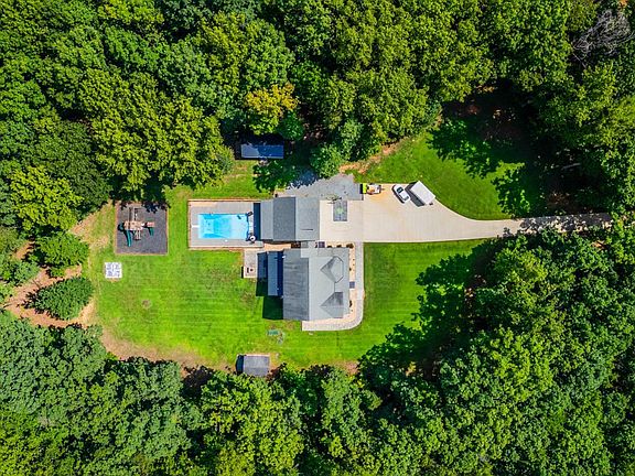 5,000+ SF home on 5.7 acres in a prime Forest location. Decorated as a 5 bedroom home, features on the main level include an open floor plan with great room, gourmet kitchen, dining room, breakfast area, office, refinished hardwood floors, pantry, and mud room. The second floor offers a well appointed primary suite with en-suite bath and dual walk in closets, 3 additional spacious bedrooms, hardwood floors, laundry room and hall bath with dual vanities. The finished living space continues in the basement with a family room with fireplace, game room, exercise room, decorated 5th bedroom, full bath and utility room. If additional living space is needed, the 562 SF partially finished bonus room over the garage could allow for future living space. The oversized 2 car garage is heated and cooled and offers a high ceiling, half bath and direct access to the pool. Exterior features include a salt water pool, covered porch, fire pit, playhouse and a great yard with cleared area and woods.