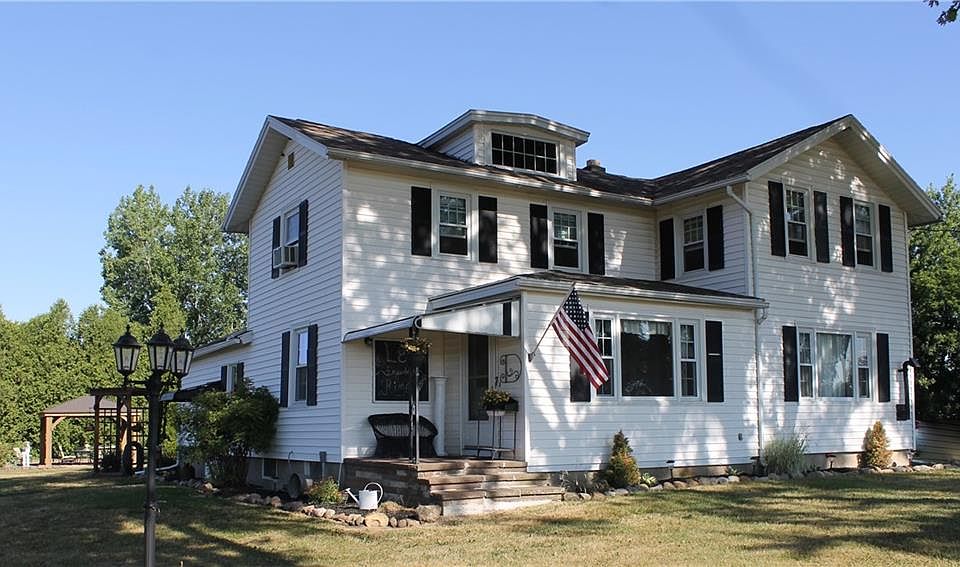 Welcome home to your stately 1895 country colonial with today's modern finishes. Move right in! This gorgeous home features 3 bedrooms, 2 beautifully remodeled 1st and 2nd floor full baths, french doors, natural woodwork, updated laminate floors in dining and living rooms, new ceramic floors in bathrooms, tongue and groove ceilings in kitchen, sun room, and master bedroom, cedar lined closet. Hardwood floors in master bedroom and hall. Pellet stove in the living room provides an additional heat source. Two nice sized barns offer plenty of storage for your personal possessions and workspace. Smaller barn 16' x 42" with newer metal roof. Bigger barn is 42' x 64". Plenty of elbow room and privacy (no neighbors close by!)