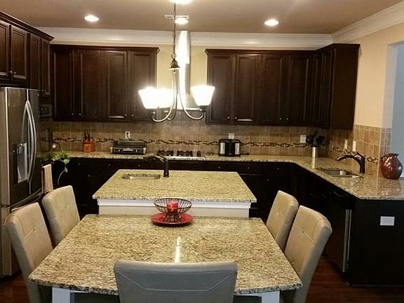 This New Haven floorplan boast 2 master bedrooms, hardwoods through out the main level, chefs kitchen with 1 breakfast island, 1 counter top island, keeping room/sunroom, open to a deck ,formal dining 12+ 2 fireplaces 1 in the master bedroom with 2nd deck access. fully loaded basement with restaurant/bistro bar, game room, media room with 120inch projector screen and surround sounds with 2 bedrooms, 2 full baths. 3 car garage, side entrance nestled on wooded cul de sac 3 sides brick , recessed lights, surround sound, intercom system no sign