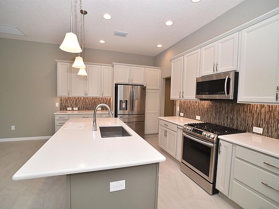 1 year old designer home in the Villages 55+ community with 2 car plus golf cart garage on a small pound. Month to month rental ideal for someone needing a short term rental at a rate usually only available on an a annual commitment. Great opportunity to either see all the Villages has to offer as you try it out for the first time or perhaps you're waiting for your own home to be built! The amenities fee covers participation in most activities in the Villages, including the use of over 40 Executive golf courses. All appliances are included but the home is otherwise unfurnished. Only a 10 minute golf cart ride to Brownwood and a 5 minute walk to the nearest pool and recreation center. Offered only as a short term lease of 1 month or more. The home is only available between August 1, 2021and January 3, 2022. Owner pays water, garbage pick up, and The Villages Amenities fees while the renter pays electric and gas bills. The renter pays the last month's rent and a $1000 security deposit upon signing the lease agreement. Monthly rent period may begin on any day of the month.