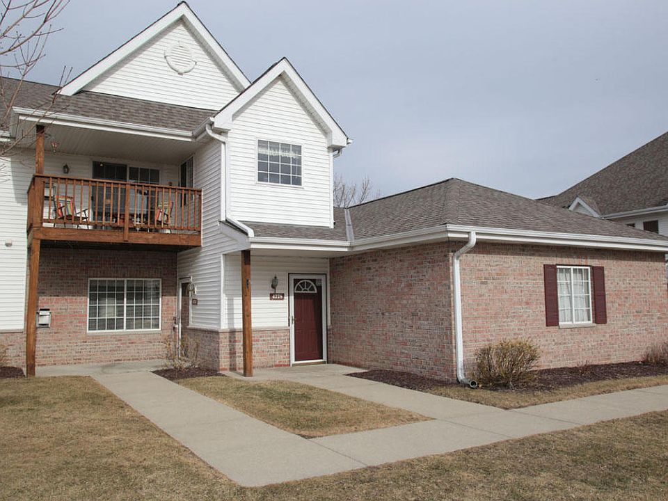 Two bedroom, 2 bath condo with den. Living room has gas fireplace, patio doors to private deck overlooking pond. In-unit laundry. Open concept. 2 car garage. 2nd floor unit. Large master bedroom with walk-in closet. Pet friendly! Sizes and information approximate.