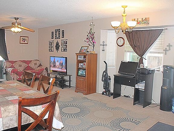 This home features a newer roof that was installed last year. There is a large living/dining room combination creating an open layout. This home features dual pane windows, indoor laundry room, two good size bedrooms and two full bathrooms. The kitchen has tile counter-tops, a built in electric cook-top and oven. There is a sliding door to covered patio from the living room area. The back yard has a grass area and is low maintenance. This home is similar to duplex living with one common wall, this is the right half of the duplex but single-family ownership. NO Association dues.