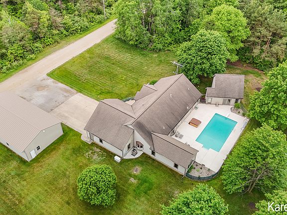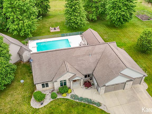 Welcome to this perfect country retreat! This stunning executive ranch home is nestled on nearly 5 acres, complete with a guest house, pole barn, inground pool, hot tub, and a whole house generator. Inside, features 3 bedrooms 2 ½ baths, heated floors, and 9ft ceilings with many windows to provide natural light. The updated kitchen is a chef's delight, complete with a generous pantry, center island, and newer appliances. The master suite features a jacuzzi tub, new countertop and a walk-in closet. The versatile guesthouse includes a new split heat pump/AC, electricity and an additional bedroom, bath, and family room (built 2007). The exterior of the home includes a 36x18 inground pool, hot tub, underground sprinkling, garden area and fire pit - ideal for both unwinding or entertaining. The 3 plus stall garage is complete with heat, cold water, additional storage, and attic space. Additionally, there is a 30 x 60 pole building (used to be a hangar) that has electricity and a new metal roof. Some additional updates include; new boiler and AC, shower doors, carpeting, replacement windows and more. Don't miss out on this beauty!
