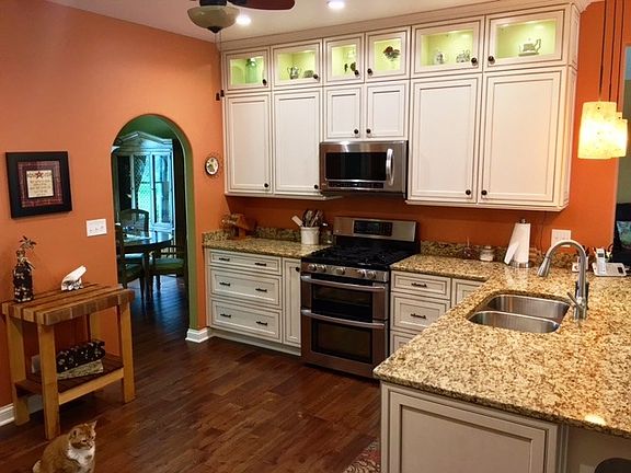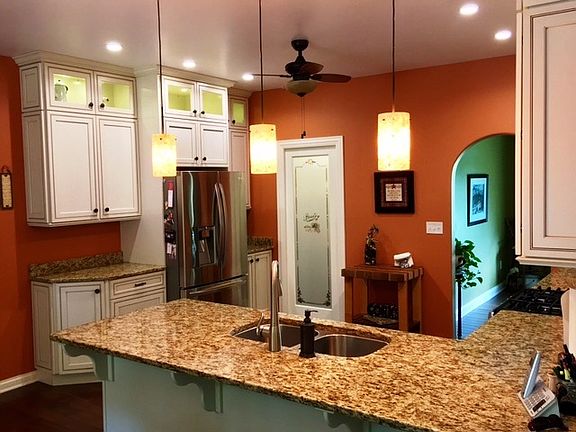 - AMENITIES: Ceiling Fan(s), Porch Covered, Main Floor Laundry, Eat-In Kitchen, Garage Door Opener, Jet Tub, Patio Open, Formal Dining Room, Main Level Bedroom Suite, Ceilings-Vaulted, Closet(s) Walk-in, Landscaped, Pantry-Walk In, Twin Sink Vanity, Ceiling-9+, Countertops-Solid Surf, Tub/Shower Combination, Tub and Separate Shower, Central Vacuum System, Great Room, Ceiling-Tray, Open Floor Plan, Pocket Doors, Foyer Entry, Custom Cabinetry, Split Br Floor Plan