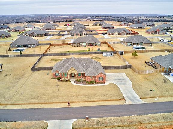 Executive and beautiful home on almost 1 acre lot in Edmond! Built in 2015, 3 beds, 2 full baths and a 3 car garage! The exterior of this home features beautiful stone. Large entry, formal dining space, and home office. The living area has a stunning stone fireplace and is open to your dream kitchen. This gorgeous kitchen has lovely wood cabinetry tons of storage, walk-in pantry and granite counter tops, stainless steel appliances and beautiful lighting. Master bedroom has a huge attached master bathroom with dual vanity, bathtub, large walk-in shower, and a spacious walk-in closet with extra built-ins and shelving. Lovely large windows in the home and beautiful light fixtures. Don't miss this home, schedule your showing today!