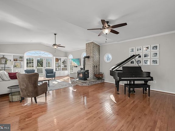 Spectacular brick-front Rancher situated on a premium 1.41-acre lot and located in the highly sought-after Bradford Estates community! Boasting gleaming hardwood floors, neutral color pallet, light-filled interiors, classic moldings, updates throughout, and design-inspired features in every room! From the open floor plan to the amazing outdoor living space, this gorgeous home hits the perfect balance of privacy and every entertainer’s dream; Light filled living room adorned with soaring cathedral ceilings, a brick profile wood stove, lofty Palladian windows, and easy access to the sizeable deck; Dining room graced with a bay window offering amazing backyard views; Eat-in kitchen with sleek stainless-steel appliances, ample cabinetry, decorative backsplash, granite countertops, breakfast bar, island, and pendant lighting; Owner’s suite highlighted with a walk-in closet, dressing area, wainscotting, exquisite en-suite full bath with a soaking tub and glass enclosed shower; Private office with French doors and built-in cabinetry; Three additional main level bedrooms and a full bath ; Oversized pantry, laundry room with a custom barnwood track door, and a powder room complete the main level; Travel downstairs to find the expansive family room, bedroom, full bath, bonus room, storage, walkout access to the backyard, and garage access; Exterior features: Landscaped grounds, wrap around deck, secure storage, play area, covered front porch, 2-car attached garage, tree-lined backyard, panoramic views, and close in proximity to everything Mount Airy has to offer! Recent updates: Lower-level carpet, deck, paint, and more! A MUST-SEE!