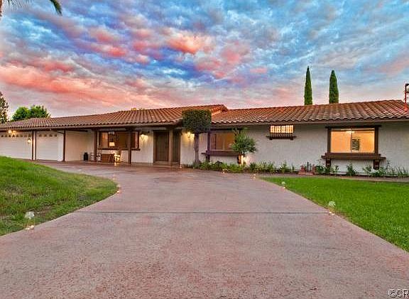 Lovely single level custom built Hacienda style Yorba Linda home on a private Cul-de Sac street. 4 Bedrooms all with beautiful mirrored closet doors, 2 Baths, 2,305 Sq Ft. located on a 20,400 Sq Ft Lot. Saltillo tile floors, carpeting, custom ceilings in family room. Kitchen dining with additional seating room for bar stools. Formal dining, formal living, open concept family room off kitchen with charming fireplace. Thermador cook top and double ovens. Newer dishwasher and laundry room located off kitchen. Large private office or third garage space. Room for RV parking, boat, or other toys. Finished garage with lots of cabinets and duel access to attic storage. Circular driveway. Heated saltwater pool, fire pit and covered patio. Must see! Well maintained, super clean home ready for you to move into. Close to shopping, restaurants and other amenities, plus no HOA or Mello Roos. Yorba Linda High School.