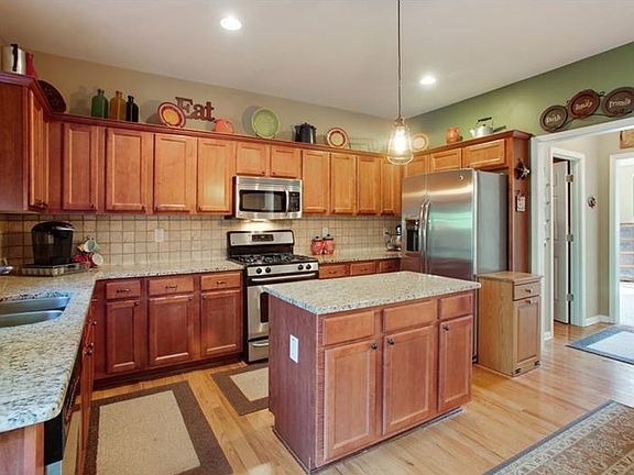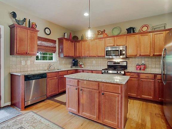 Must see, Home is in Move In Ready Condition! Open Floorplan, Great for Entertaining, Gourmet Kitchen features Granite Countertops, Stainless Appliances, Island is Open to Breakfast Rm and 2 Story Family Rm, Four Spacious Bdrms and Laundry Rm Upstairs. Large Deck & Flagstone Patio are Great for Entertaining. Enjoy Huge, almost 1 acre Fenced Backyard. Full Daylight Basement is Finished with One Large Rm, Small Rm with Custom Built-Ins that would make great office and is Stubbed for a Bath. This home has Generous Closet Space and Extra Storage Rm in Basement.
