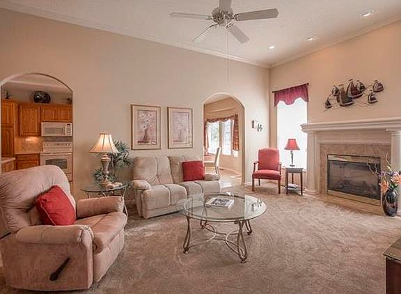 Extraordinary Villa in Maintenance Provided Area that feels NEW! So much Finished Space that has been perfectly maintained & upgraded such as new windows that are not builder grade. Enjoy an inviting Great Rm w/Hi Ceil and F/P set off by Columns & Arched Doorways, a Study/Din Rm w/Wood Flrs, Huge Kitch w/Bkfst Rm leading to Newer Trex Deck w/Awning, Mstr & 2nd Bedrm on Main Flr. Low Lev is Fabulous w/Fam Rm, 3rd Bedrm, Craft/Office or 4th Bed,& Full Bth.