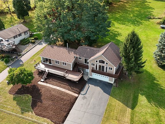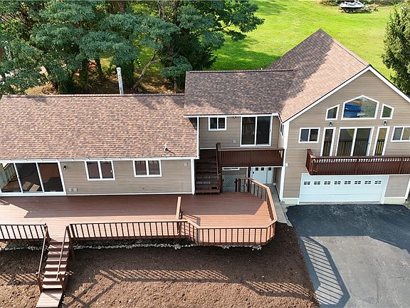 Looking for a unique property in the Finger-Lakes? Nestled on Owasco Lake is where you’ll find it! With 63.55 feet of lake frontage and a 2,060 ft home, the 11 mile crystal clear lake is visible all year long. When entering from either the front door or 2 car garage, you’ll be greeted by the recreation room that gives access to both the primary residence and In-Law Suite. The primary residence exhibits an updated kitchen with newly installed quartz countertops and LVT’s that lead through the living room, to the tiled bathroom and the two freshly carpeted bedrooms. This side of the residence gives way to a sizable deck and more views of the lake. The basement is home to a full bathroom, laundry area, and storage room. The In-Law Suite boasts accessibility with its open-floor plan which includes, the dining room, laundry room and full bathroom. The cathedral ceilings and immense windows on this side showcase the kitchen, sitting area, bedroom and loft. With 3 sliding glass doors and access to the upper balcony, you’ll have no shortage of remarkable lake air and views. The newly installed 30-yr Owens Corning roof will ensure this water-front home can be enjoyed worry free for years.