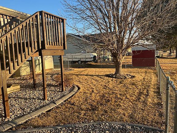 This home was Built in 1997 with a split level entry and double car attached garage. In a quiet, safe and kid friendly neighborhood. This house is within walking distance of Centennial School, Centennial Ball Fields and Park. Close to the Quail Run golf course. A fenced in back yard with a large deck overlooking Centennial ball fields where you wont have backdoor neighbors!! There are 2 bedrooms with a bath upstairs and 2 bedrooms with a bath downstairs. Bedrooms are great size with large closets in each room! Plenty of room to host or relax upstairs and a spacious living room in the basement. All appliances will stay EXCEPT THE FRIDGE. NO WASHER AND DRYER. New curb edging and 14 ton of new rock around the house along with Thrasher concrete leveling the driveway all done in 2021. Underground sprinkler system installed in 2020. Water softener and reverse osmosis system are installed and owned not rented!! Motivated seller!!