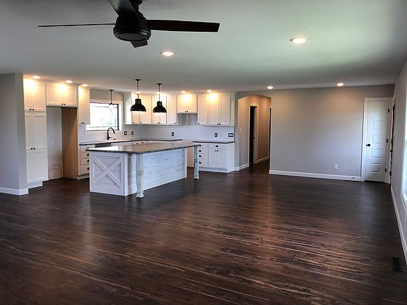 Beautiful Farmhouse Style Home! This 3 Bedroom, 2 bath ranch with 1,706 sqft sits on 3 acres just a few minutes from town. This homesite has mature trees, a large circle drive and is surrounded by farmground. The home was stripped to bare studs with a revised floor plan and new master bath addition with a walk in glass, tile, and Onyx shower. All wiring, plumbing, HVAC, windows, doors, roofing, siding, cabinetry, and flooring are new. New concrete sidewalk and patio. New roof, entry door and fresh paint on the 2 car 24' x 36' detached garage with room for storage. There is also a 72x54 Morton building that is perfect to park your boat, your RV and your tractor in. Everything about this home is brand new. This house is ready to move in and start enjoying! For more info call: Jason Cleaver - 620-431-9837 Ryan Carter - 620-432-1429