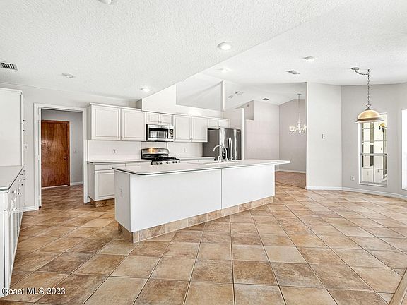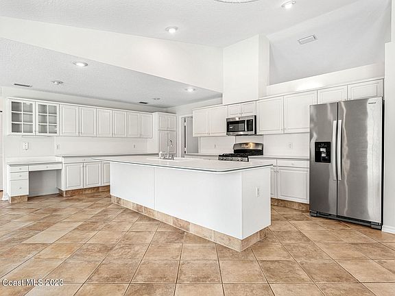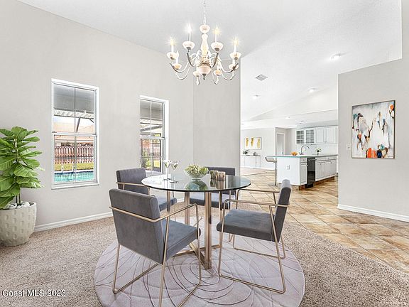 Ride your bike to the river & the beaches! Settled along a cul-de-sac street, this award-winning design with original owner sits on a big lot w/a sparkling pool, NEWER roof with NEWER a/c! Tile & wood laminate floors span most of the home, underscoring vaulted ceilings & a bright open plan. Spacious Living & dining areas flow into a delightful island b-fast bar kitchen w/scads of cabinets, SS appliances, a gas range w/lovely pool views. A generous owner's suite features personal pool entry, a walk-in closet, dual sinks, a step-up tiled tub & separate shower. Across the home, 2 extra bdrms & tub/shower bath are ideal for kids or visitors. Breezy screened lanai overlooking a large pool & expansive backyard. The cabana bath is handy for guests. Roof 2019 with Solar replaced at the same time.