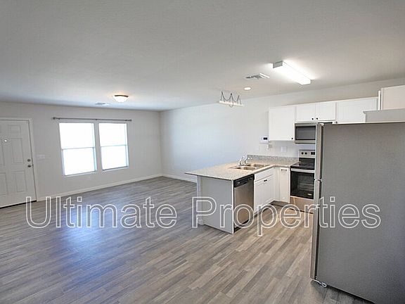 Beautiful 3 Bedroom + 2 Bathroom + NO HOA!! Home features wood looking vinyl throughout, carpet in the bedrooms. Kitchen features granite counter tops, stainless steel refrigerator, range/oven, built in microwave and dishwasher. Easy to maintain landscaping.