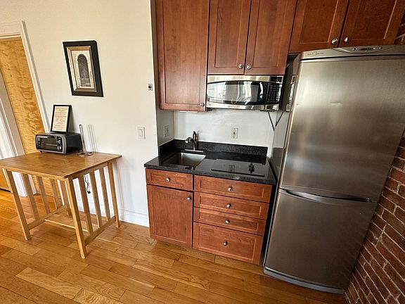 Beautiful Top Floor South End Furnished 1 Bedroom Featuring a Built-In Fireplace, Beautiful Exposed Brick, an Efficiency Kitchen, Built-In AC, Hardwood Floors, Great Closet Space, High Ceilings, a Common Roof Deck, and Laundry Onsite. Right on the South End/Back Bay border near many fantastic Bars/Restaurants, Back Bay Station (Orange Line and Commuter Rail), the Prudential Center, Green Line, CVS, and a Small Grocery Store. Virtual and Video Tour Available Furnished Utilities: Water Included (Tenant Pays Electric Heat and Electricity) Move in Costs: First Month's Rent, Security Deposit, and Broker Fee (No Last Month's Rent Upfront) Lease Length: 12-19 Months MBTA Access: Bus: 43 Tremont St @ Rutland Sq (0.15 mi) Bus: 47 Harrison Ave @ E Newton St (0.51 mi) Bus: 1 Massachusetts Ave @ Columbus Ave (0.23 mi) Bus: SL4 Washington St @ W Newton St (0.38 mi) Bus: 10 Dartmouth St @ Appleton St (0.24 mi) Bus: 8 Washington St @ Mystic St (0.42 mi) Bus: 39 Huntington Ave @ Belvidere St (0.24 mi) Subway: Orange Line Massachusetts Avenue (0.27 mi) Tram: E Prudential (0.24 mi) Bus: 9 Ring Rd @ Huntington Ave (0.32 mi) Bus: 55 Belvidere St @ Huntington Ave (0.24 mi) Rail: Franklin Line Back Bay (0.33 mi) Tram: D Copley (0.47 mi) Bus: 504 Stuart St @ Dartmouth St (0.38 mi)