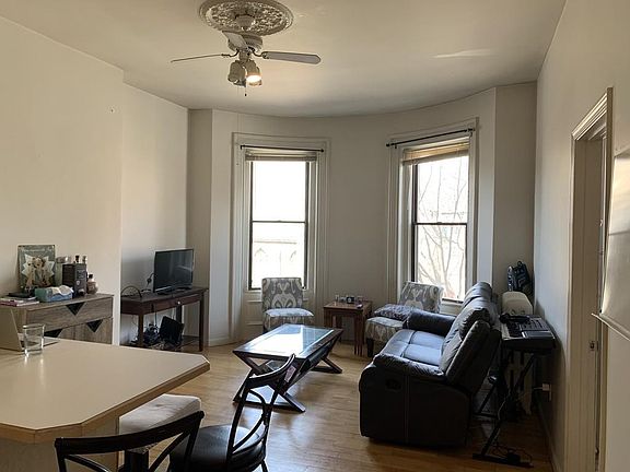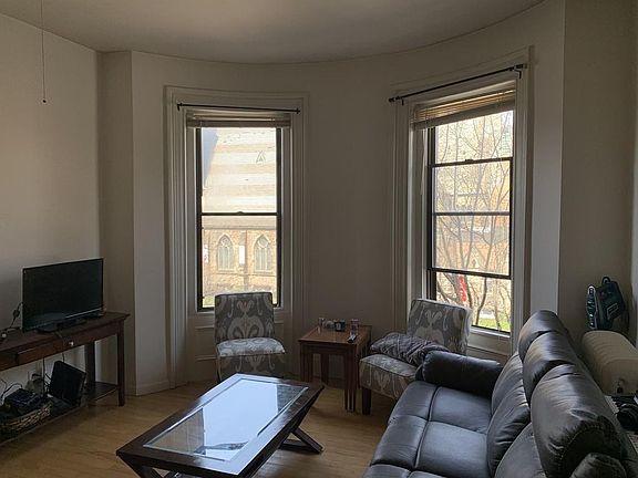 Spacious and bright three bedroom South End apartment in a perfect location! Features include open layout, hardwood floors in living areas, updated kitchen with plenty of cabinet space, breakfast bar and updated bathroom with full tub. Heat and hot water are included, common laundry on first floor and additional storage closet in basement.