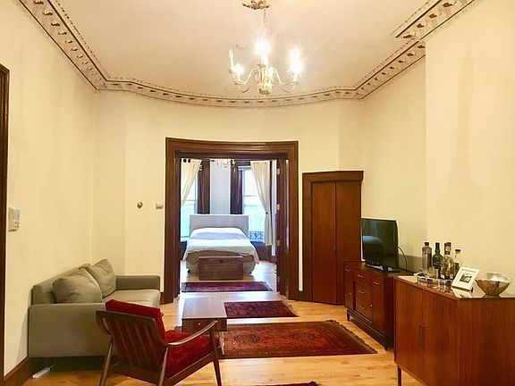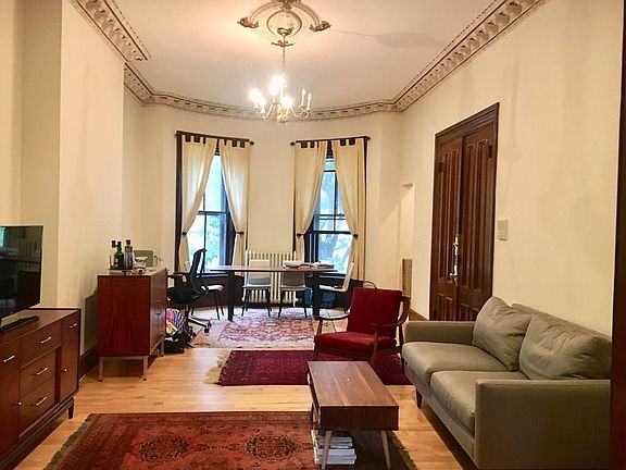 NO BROKER FEE! This bright and sunny oversized one bedroom in a prime South End location features gorgeous detail throughout. The large double door entryway sets the tone for this grand residence with its gold-leaf crown moulding, beautiful hardwood floors, large windows, and high ceilings. A generously sized living room flows seamlessly into the dining area which is flooded with light from two large windows. The kitchen has recently been renovated and features granite counters and stainless steel appliances. The sizable bedroom is complete with an en-suite bath and also contains a walk-in closet. There is common laundry on the first floor. This home is not to be missed. Available Now. *Landlord to pay broker fee - split 50:50 with cooperating broker