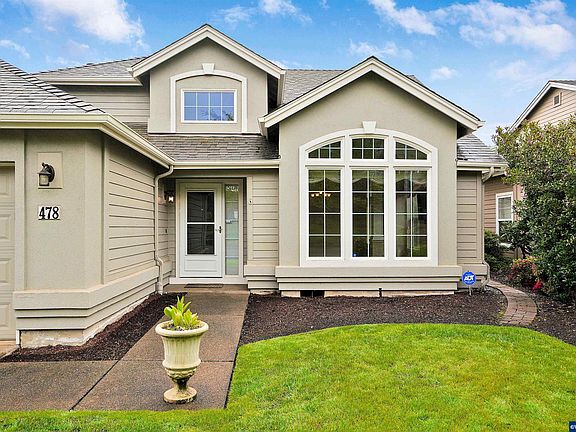 Live at Creekside on the course in a one level home with beautiful views of the 1st Fairway and beyond! Primary suite overlooks the course as well as the kitchen, family room. Deck across the entire back of home with a retractable awning. Soaring ceilings in living room and formal dining providing a vert light and bright space. Open Sunday from 1 to 3 PM.