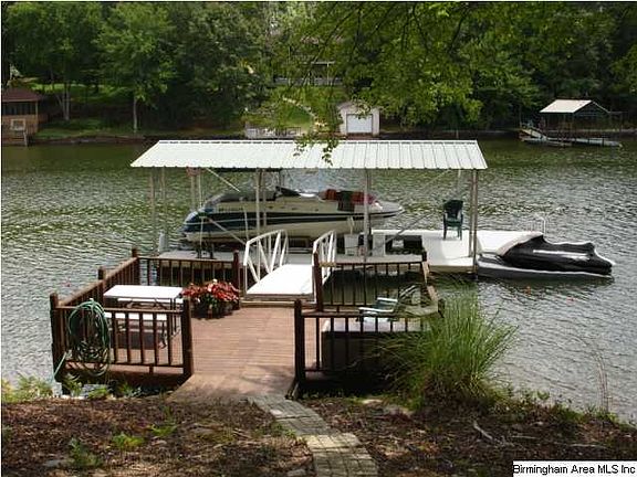 124 feet of shoreline, aluminum dock with boat lift and jet ski port, also a stationary dock. You will love the gentleness of the lot. Three bedrooms and two full baths. Laundry room with cabinets. Great lake home has rustic charm and a cottage feel. Long driveway has circle drive at the front entry. County water and well (owner is currently using the well).