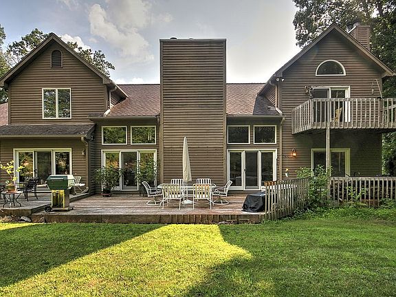'Staycation' with pleasure in your spacious private retreat in a nature-rich, tranquil setting. Desirable 1st and 2nd floor Master Bedrooms perfect for the in-law or Au pair. Large Great Room with beautiful floor to ceiling stone fireplace with a walkout to a large deck and fenced in yard bordering protected wooded area. Remodeled gourmet kitchen w/ granite, stainless steel GE Monogram appliances with walk-in pantry, large formal dining room overlooking in-ground pool. First floor master bedroom with en suite bathroom and a formal living room w/ fireplace and powder room complete the first floor. A double-winged second floor includes 3+ Bedrooms including a larger master bedroom with fireplace and deck overlooking wooded area. Kohler whirlpool. Energy efficient hydro thermal heating with solar assisted hot water system, central air, custom-built, heated, in-ground gunite pool (2006), Generac GUARDIAN whole-house, 24 KW standby generator. Three car garage with additional outdoor parking for 6+ vehicles or small boat. Huge storage and workshop area in basement. Home is set back off the road on two secluded acres.