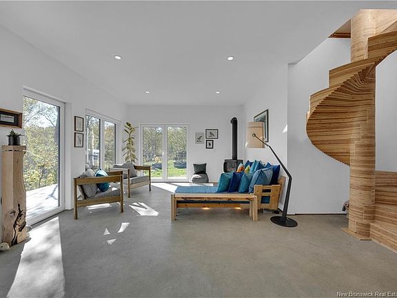 Set on 4.72 private acres with over 300 feet of oceanfront, this passive solar home looks out toward Grand Manan and the open horizon, where sky and sea merge in ever changing light. Eagles soar overhead, whales pass offshore, and seals visit the cove, this is everyday life in this rare coastal sanctuary. Sheltered by granite cliffs, the home combines warmth and simplicity with modern design. It features Legalett radiant concrete floors, south facing windows, an on demand hot water system, and a Jotul gas fireplace. Lime wash walls and minimalist lines create a calm, natural atmosphere. The exterior, finished in Yakisugi (charred cedar using the Japanese Shou Sugi Ban method), blends seamlessly into the forest and stone. A concrete pool and sauna foundation are already in place, ready to become your private ocean view spa. A pine workshop and cedar shed, both protected with traditional natural tar, complete the property. The workshop can easily be converted into a guesthouse or artist’s studio. A unique home where nature, architecture, and light exist in perfect balance built not to stand out, but to belong.