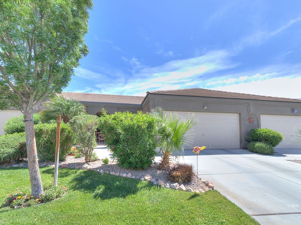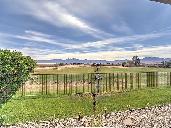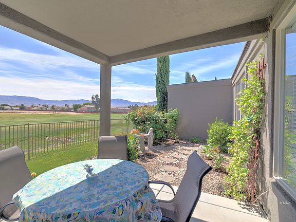 Golf course and sunrise mountain views from the back patio and a secluded patio in the front with tranquil fountain. Well maintained former model home in the very desirable Coyote Willows community. Water heater 1.5 years old, AC recently serviced/maintained, fans inside and out, additional cabinets in laundry room.