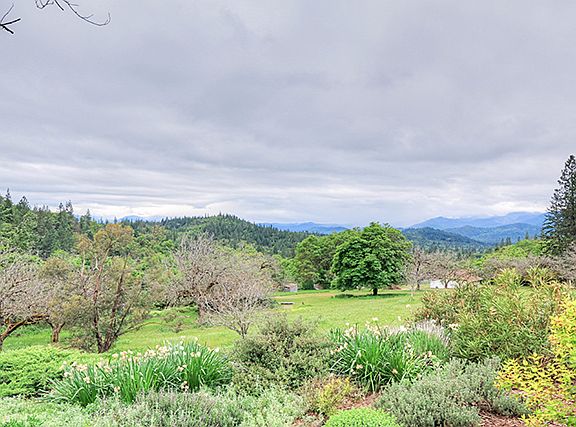 Set on a knoll providing wonderful views overlooking pastures and orchards with mountains in the distance, this custom home provides comfort and serenity for those who live here. Enter the gate, cross the seasonal creek and wind your way to this comfortable and serene setting. There's a walnut orchard in front and behind the house is a forest of pines and madrones, creating a buffer in all directions. This is a place where growing plants and trees thrive. The living room has a cathedral ceiling and great light from all the windows. There?s a wonderful sun room in the front that plants love. Call for your personal tour today!