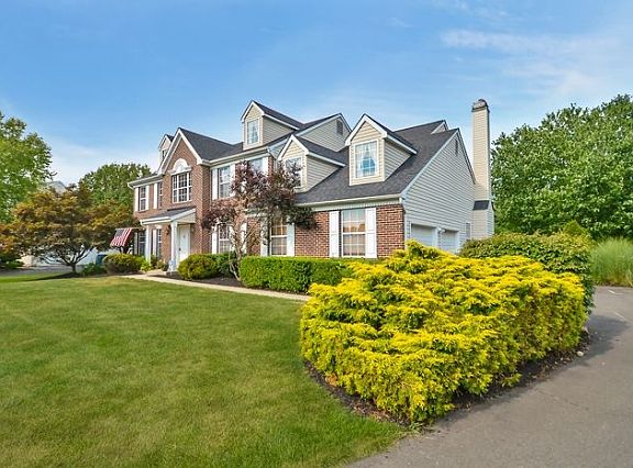 Beautiful, spacious Ambler home with plenty of room to roam in sought-after Squires Knoll community! Open, bright 2-story foyer with hardwood flooring and crown molding welcomes guests into the home while neutral living room with two big bay windows is the perfect place to unwind after a long day. Large eat-in kitchen is ideal for entertaining, boasting hardwood flooring, stainless steel appliances, abundant oak cabinetry, recessed lighting, breakfast bar, spacious pantry and desk area. Fantastic floor plan features recently remodeled family room next to kitchen for an open atmosphere ensuring everyone feels right at home! Family room features new drywall, recessed lighting and cozy stone gas fireplace. Private master bedroom suite offers separate sitting area and spacious full bathroom boasting double shower, white cabinetry, granite countertops and convenient linen closet. Three additional bedrooms, plus an office area that could be used as an extra bedroom, round out this elegant home. Additional features include new roof, huge unfinished basement, 2-car garage with storage space above, home warranty and sliding glass doors from kitchen leading to beautiful backyard patio. Private backyard is fenced and features swimming pool, fire pit, shed and backs to local trail and creek. See this luxurious home to believe it!
