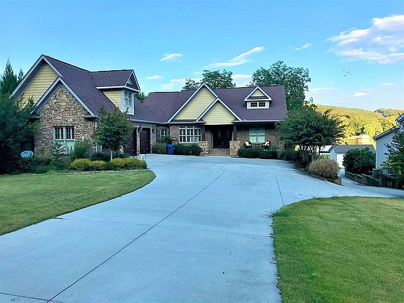 Beautiful waterfront Home with Boathouse, electric hoist and jet ski slip, 5-6ft water depth, 105+/-ft of shoreline, and concrete seawall. This breathtaking 5 bedroom, 6 bath home is located on beautiful Lake Guntersville. Hardwood/tile throughout. Main floor has an open floor plan with living area, dinning room and foyer. Large kitchen with an abundance of custom cabinetry. Large island with granite tops and stainless appliances. Master suite on main level, with large master bath and walk in closet. Downstairs offers a second living room or family room with bar, granite counter tops, and custom cabinets. This home also features 2 laundry rooms, a 3 car garage, and much more.