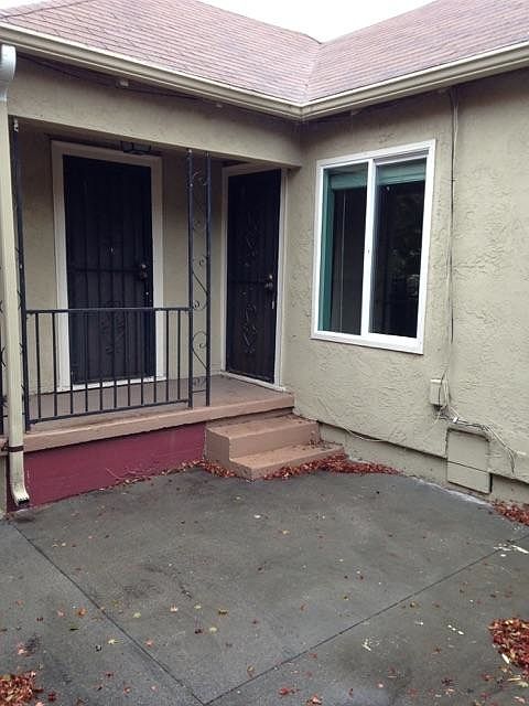 2 bedroom home shares the lot with a house on the front. This unit is down the driveway. Home has living room and dining room. Hardwood floors. Decorative tile work in bathroom. Wall heat. Washer hook up only. Gas stove will be provided if needed. Shared yard. Includes a basement room in front house, although we do not guarantee the dryness of the space. On lovely tree lined street off of Telegraph. Water and garbage paid.Rear house ~ Hardwood floors ~ Dining Room ~ Shared yard.