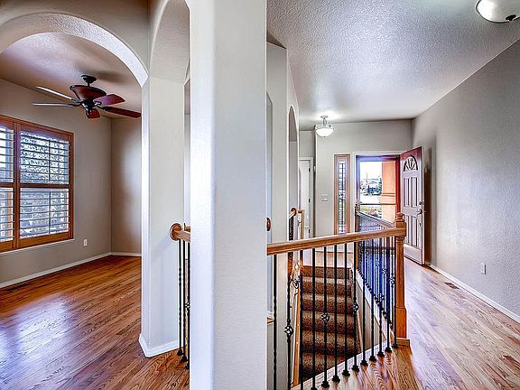 Beautiful stucco rancher on 1/3 acre fenced corner lot with gorgeous front range views! Right around the corner from a park. Impressive wood shutters on EVERY window! Hardwood floors from entry through kitchen. Spacious kitchen with gas stove, tile counters, pantry, island and plenty of cupboards, overlooks the family room. Gas fireplace warms up the space that walks out to the refinished wood deck and flagstone patio. Master suite has private bath with soaking tub and walk-in closet. Second bedroom on the other side of the main level offers privacy for kids or guests. Huge lower level rec room offers plenty of space for your big screen TV and pool table. Two additional generous bedrooms complete the home. This home won't last long!