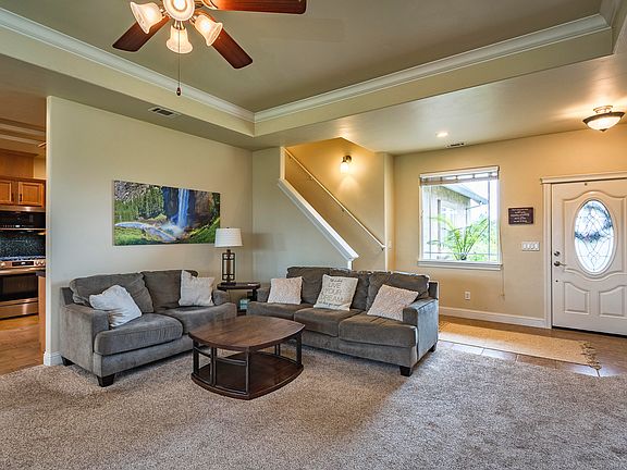 Discover the elegance of this custom-built home in a sought after westside location boasting breathtaking views of Mt. Lassen from the second living area upstairs. Enjoy the serenity of the Sacramento River trails and the convenience of downtown Redding's dining and shopping, all just moments away. This prime west side residence features a living room and master bedroom adorned with coffered ceilings and crown molding, an office with pristine hardwood floors, and three expansive bedrooms. If you enjoy privacy and family friendly yard games, then the backyard won't disappoint. The large, covered patio and concrete gated RV parking add to the allure of this property, making it a must-see for those seeking a blend of luxury and location.