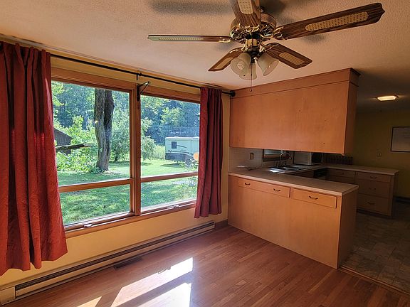 Situated on 5.5 private acres of land sits this charming cedar-sided Ranch. This home offers 3 spacious bedrooms, and 1 and ¾ baths, hardwood floors, a large kitchen with maple cabinets and ample cabinet space, large dining area with a Dutch door leading to a 3-season enclosed porch. The large living room has a wood stove insert, a walk-up attic, and a separate laundry/mudroom room. The lower level offers a large, finished bonus room. Outside you'll find a large, oversized workshop/garage for all your storage needs, fenced-in garden space, fruit trees, small barn, poultry coop, metal roof, newer windows, 2018 heating system, auto generator. Please do not walk the property without a showing. Thank you.