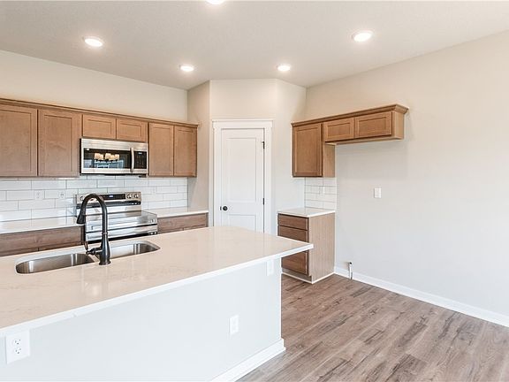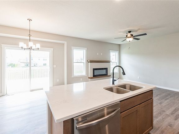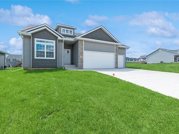 Presenting the Stryker Ranch plan by Venture Homes in the desirable Browns Woods Hollows development in West Des Moines! This plan is open concept for extremely easy living and features: 3BR/2BA, 1400 sq ft above grade, 3 car attached garage on a large corner lot. Interior features: 9' flat ceilings throughout; LVP flooring in entry, hall, kitchen, dining area, great room, rear entry, baths and laundry room; quartz countertops in baths; upgraded quartz countertops in kitchen; slow close cabinets/drawers in kitchen, full ceramic back splash in kitchen, nice walk in pantry with wood shelves. Master bedroom has trayed ceiling. Master bath to have raised double vanity, ceramic tile walled shower with fiberglass base and spacious walk in closet. Ceiling fans present in all 3 bedrooms and great room. Carpet in all bedrooms and down stairs to LL landing. Basement is egress window, unfinished with stub for 3/4 bath for any future finish. Exterior of home has nice 11x14 deck of rear slider, full stone columns on double garage, masonry house numbers and sodded yard.