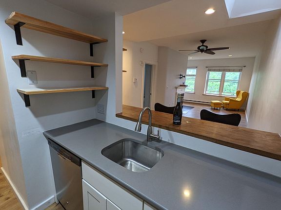 Click "Request a tour" for fastest response! One bedroom penthouse in the heart of the South End. Updated kitchen with quartz counters, breakfast bar, and stainless-steel appliances. Wood-burning fireplace in the living room, recessed lighting, hardwood floors throughout, and skylight allows for lots of natural sunlight. Enjoy skyline views from the semi-private roof deck shared with only one other unit. Walk-in closet in the bedroom, in-unit laundry, and deeded storage. Water and sewer included in the rent