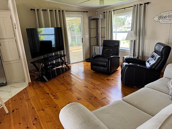 For RENT and for SALE $129,000. Possible owner financing. Charming Furnished 2-Bedroom Home with Lake Views in Tall Oaks 55+ Gated Community Welcome to this beautifully maintained 2-bedroom, 2-bath manufactured home located in the desirable gated community of Tall Oaks, a vibrant 55+ neighborhood offering comfort, convenience, and an active lifestyle. Situated on a lake front lot which includes water, sewer, trash pickup, and full access to all community amenities. Key Features: Recent Upgrades: Newer roof, newer HVAC system, and washer & dryer only 8 months old Open-Concept Living: Spacious layout connects the kitchen, dining, and living areas for easy entertaining Stylish Kitchen: Features a center island and ceramic tile flooring Comfortable Living Room: Furnished with a sofa, two recliners, and a large flat-screen TV Primary Bedroom Suite: King-sized bed, double-door closets, chest of drawers, and a remodeled en-suite bath with walk-in shower Guest Bedroom: Includes a pull-out couch, chest of drawers, and a large TV perfect for visitors Guest Bathroom: Tub/shower combination with ceramic tile flooring Convenient Laundry: Washer and dryer located in a closet just off the dining area Flooring: Rich wood flooring throughout, with ceramic tile in kitchen and bathrooms Lanai: Relax and unwind in the screened and vinyl-enclosed lanai with easy-care vinyl tile flooring and peaceful lake views Additional Storage: Outdoor shed with shelving, located just off the covered carport. This home is being rented furnished, with the exception of the dining room table making it easy to move in and start enjoying the Florida lifestyle right away. Prime Location: Tall Oaks is ideally situated near Publix, Walmart, restaurants, banks, and more everything you need is just minutes away. Annual Lease only. Tenants will be responsible for all utilities, FPL, water and sewer.