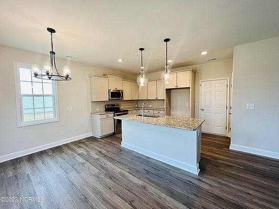 Covered Porch leads into foyer with drop zone, coat closet and powder room to your side. Great Room with electric fireplace. Kitchen and Dining Area with access to covered porch, large center island with breakfast bar and pantry. All bedrooms are upstairs. Owners Suite with trey ceiling, large WIC, walk-in shower and direct access to dedicated laundry room. 3 other large bedrooms, a full guest bath and dedicated laundry complete the second floor. Access to a huge bonus room from the second floor!
