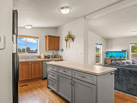 Are you seeking a tranquil country lifestyle while still maintaining convenient access to town? This remarkable residence is tailored for you! Located a mere 8 miles west of town, this charming home is nestled on a spacious 40-acre lot, allowing you to embrace the serenity of the countryside while remaining close to urban amenities. Boasting a single-level design, the residence features a generously sized living room that seamlessly integrates with the kitchen and dining area. The hallway leads to a practical laundry/mud room, offering convenient access to the side yard and garden space. The master bedroom is complemented by an attached 3/4 bath, complete with dual sinks and a luxurious tiled walk-in shower. Additionally, two more bedrooms and a full bath are situated down the hall. With a complete renovation in 2019, the home exudes modern appeal. For year-round comfort, the property is equipped with 3-zone mini split units connected to a heat pump, ensuring warmth during winter and coolness throughout the summer. The central heating unit remains in place as well. Furthermore, a robust 10,400-watt solar system significantly reduces energy costs. Don't miss the opportunity to view this exceptional property today!