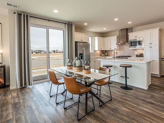 Enjoy the simplicity of a ranch with the comfort and convenience of a two-story home with the bright and spacious Akin plan. This unique main-floor master end unit features not one, but two outdoor living areas perfect for entertaining guests or simply kicking back and relaxing. This home will have 3 beds, 2.5 baths and an oversized 2 car garage, Chef's Delight Stainless appliance package with Canopy Hood over Gas Range, White Icing Maple Shaker cabinets, Iced White quartz in kitchen and bathrooms, Almond Oak vinyl plank flooring, 4"x16" warm grey subway tile kitchen backsplash and master shower tile, Drift of Mist walls with Alabaster Trim, Ceiling Fan prewires in all bedrooms, Tankless Water Heater.Photos are from a completed home of the same floor plan, therefore finishes depicted may differ from those outlined below.