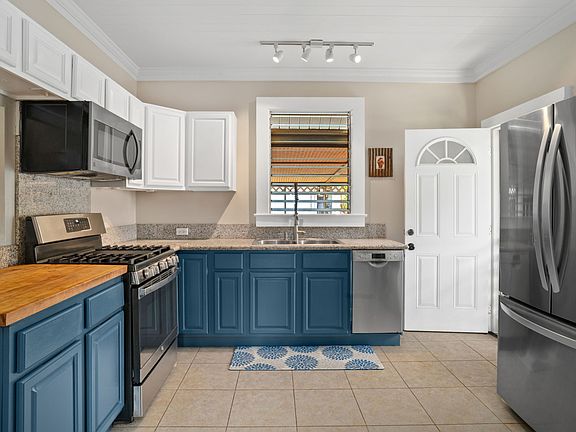Land area is actually larger than it looks and includes the grassy sideyard with amazing bananas. Most of property is fenced to keep your kids and critters safe. One car garage is ideal for the obvious or as a hobby room.