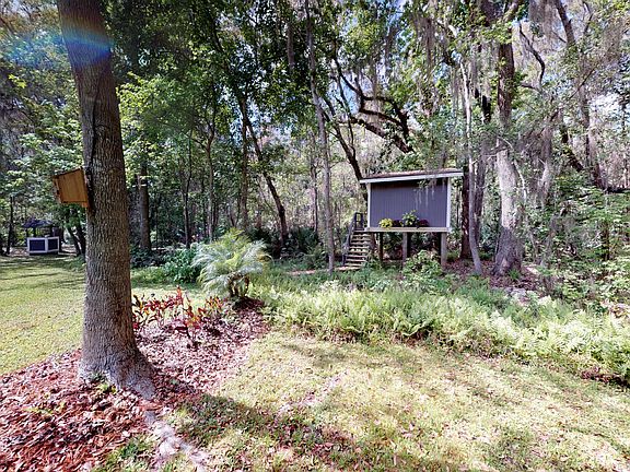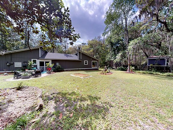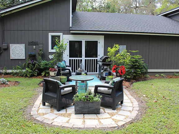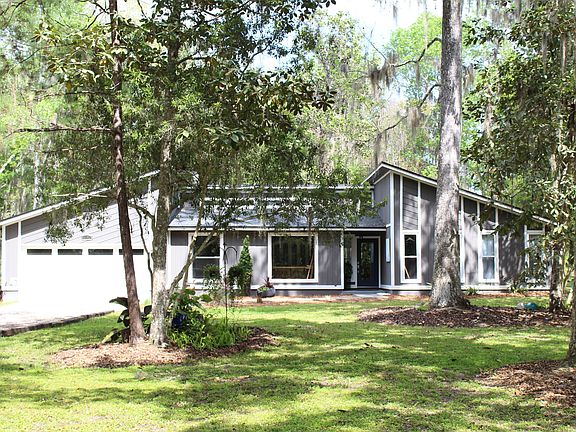 Unique contemporary 3 bed, 2 bath on secluded, shady acre in the heart of beautiful Fleming Island. NO HOAs or CDD Fees! Artistic & creative touches complete this fully remodeled home with park-like setting views. This property is a canvas of thriving plants, welcoming patios, benches & fountains that invite you to sit & relax. Custom front door opens to foyer & studio space that flows into the great room with soaring ceiling, transom skylights & stone fireplace. Dining room & studio space is split by an amazing barn door and tongue & groove wall. Custom kitchen cabinets, top of the line kitchenAid Stainless steel appliances, quartz counter, butcher-block island, featured barn-wood wall behind stainless vent hood & panoramic window. The bathrooms are a fresh haven to rejuvenate in.