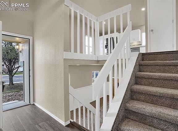 Stunning, completely remodeled single-family home on a large corner lot in the Pinehurst Station community. New Roof in 2018, New Luxury Vinyl Flooring, New Carpet, New Interior paint, New Cabinets, New Lighting, New Doors, New Cabinets, New fixtures throughout the entire home. The upper level has an open concept design with beautiful white cabinets, new Samsung stainless steel appliances, granite counter-tops, and subway backsplash with mosaic tile accents. The beautiful luxury vinyl flooring continues... into the dining space. The large master bedroom includes a walk-in closet, adjoining bathroom, and walks-out to the deck and backyard. The beautiful bathroom has a new vanity, lights, and ceramic tile surround in the tub/shower. In the lower level is a large family room with natural light coming through the new windows. Gorgeous wood fireplace with a brick surround makes it the perfect gathering space. A bathroom is conveniently located on the lower level with new vanity and full shower. Two additional bedrooms are on the lower level with large closets. The garage is fully insulated with an exit door to the backyard. The backyard is large with mountain views from the deck and yard. This home has a fully fenced backyard, beautiful trees, and a large shed for additional storage. Close to schools, trails, amenities and access to Fort Carson, Peterson AFB and Schriever AFB close by. Hurry before this home is gone!
