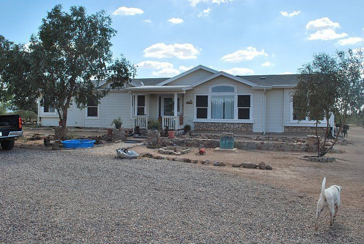 $12000+ spent on new heat pumps (2) in 2011, VA approved affixed, re-leveled 2012. Designer paint, great floor plan - quiet country living & the stars are unbelievably beautiful at night, can even see the milky way! Completely fenced with approximately 1 acre horse pen. Workshop & storage shed, loafing shed, desert landscape and complete RV setup with electric & septic. Land across the street is state land, lots of wildlife on the property, squirrels, roadrunners, cotton tail rabbits, quail, hawks.