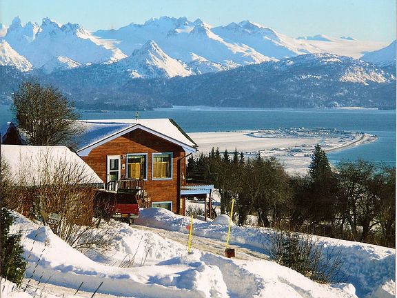 Stunning view, overlooking glaciers, mountains and spectacular Kachemak Bay. Gorgeous property with lovely gardens and natural landscape. Three bedroom, 3 bath home, plus a darling cottage with private bath. INCOME Opportunity: Cottage has been used as a vacation rental in the summer months and as a rental in the winter. The downstairs of the main house was used as a vacation rental apartment for 11 years. While in total operation, you can made enough money in the summer season, to cover the mortgage for a year! The Price includes the fully furnished 3/3 home, 1/1 cottage, and business opportunity. The property is also perfect for a family wishing an additional guest house. Make us an offer we can not resist and this amazing place is YOURS...We are also willing to lease with option to purchase. If Zillow saw this property they would have valued it as a Million Dollar View Property.