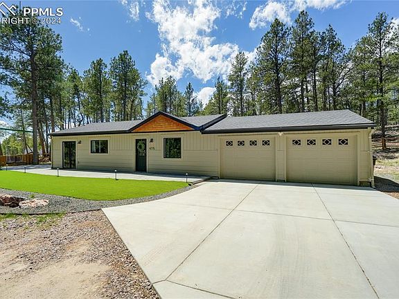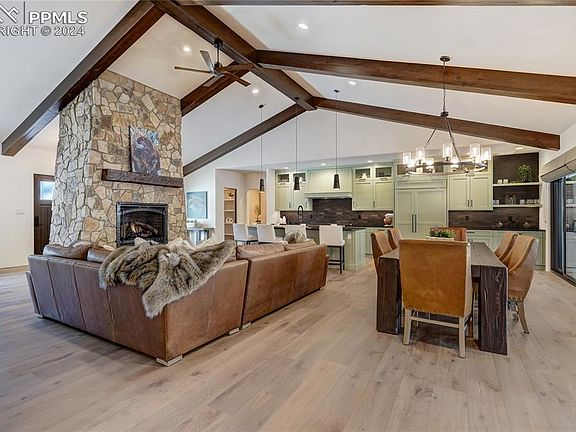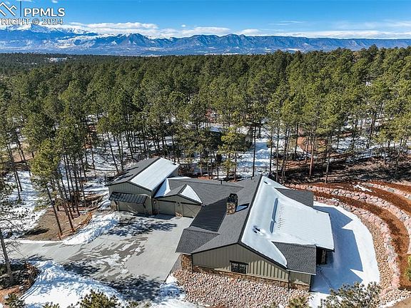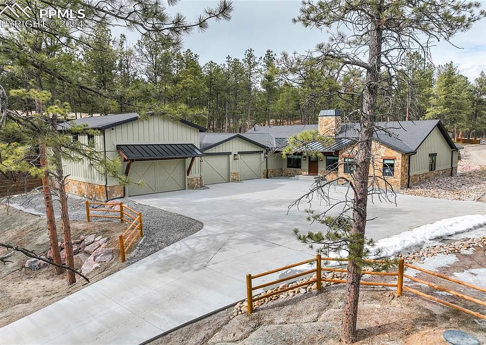 Introducing Shady Lane and the luxury of a true one-level home. Completed in 2023, this custom built 4 bedroom, 4 bathroom, 6 car home offers a single level of sanctuary on a sprawling 2.89 acre treed lot in Black Forest with a FULLY RENOVATED INCOME GENERATING secondary 2 bed, 2 bath home. A masterpiece in craftsmanship with no detail overlooked. The gourmet kitchen is a culinary wonder, featuring custom cabinetry, built-in SUB-ZERO refrigerator, Cove dishwasher, 48” duel fuel Wolf range, oversized island, leathered slab granite, & walk-in pantry. The exquisite family room features vaulted ceilings with exposed beams and a floor to ceiling stone fireplace showcasing a reclaimed lumber mantle. The intimate dining room boasts dual sliding doors to the magnificent, covered patio. The serene master suite offers vaulted ceilings, a walk-out to the patio, & private sitting area with gas fireplace. Master bathroom offers custom cabinetry, steam shower, custom LED mirror, double vanity and heated floors. Large master closet features custom cabinetry and direct access to laundry & mudroom. Two secondary bedrooms, each featuring a walk-in closet, share a spacious bathroom with double vanity and segregated tub and shower. Fourth bedroom serves as a flex space with built-in desk space & walk-out to patio. Secluded covered patio offers 450+ sq feet of outdoor living space with stunning lighting and tongue & groove ceilings. Lush landscaping package creates a feeling of privacy and escape from the world. Elevated finishes throughout including hardwood flooring, baseboard-free finish, kerfed door jambs w/drywall returns, beamed ceilings, reclaimed-lumber mantles, coated-glass fiberglass-framed windows, custom window treatments, gated entry, central vac, central A/C. Step into your dream garage – offering 6+ spaces and 2,150 sq feet, the heated garage features epoxy flooring and has been framed w/a double header in preparation to house your RV. This gem is waiting to be yours!